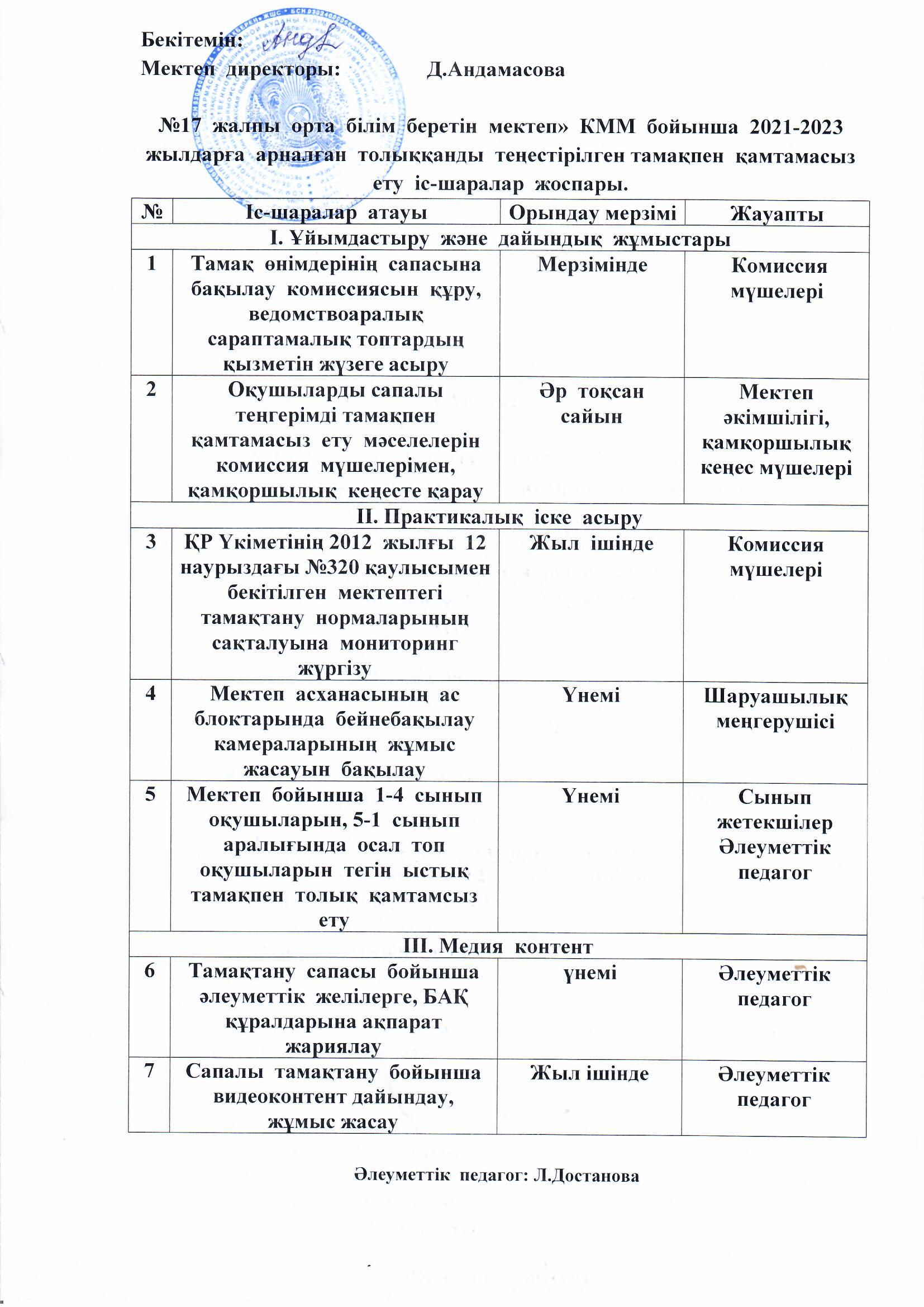 Педагогтардың штаттық кестесі мен тарификациялық кестесі